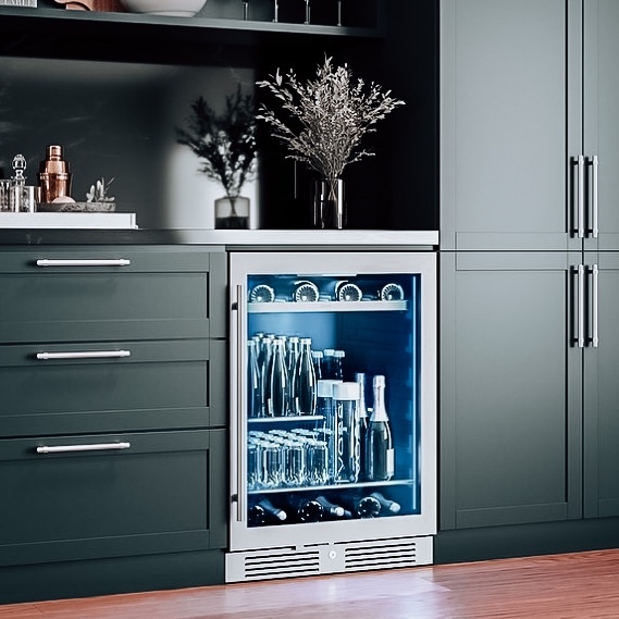 Built-in wine coolers & beverage centres are designed to integrate into your cabinetry for a sleek, custom look. Many models offer trim kits or panel-ready fronts so you can match surrounding finishes, creating a high-end, cohesive aesthetic.
